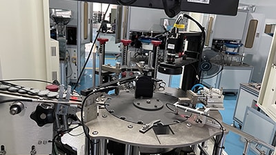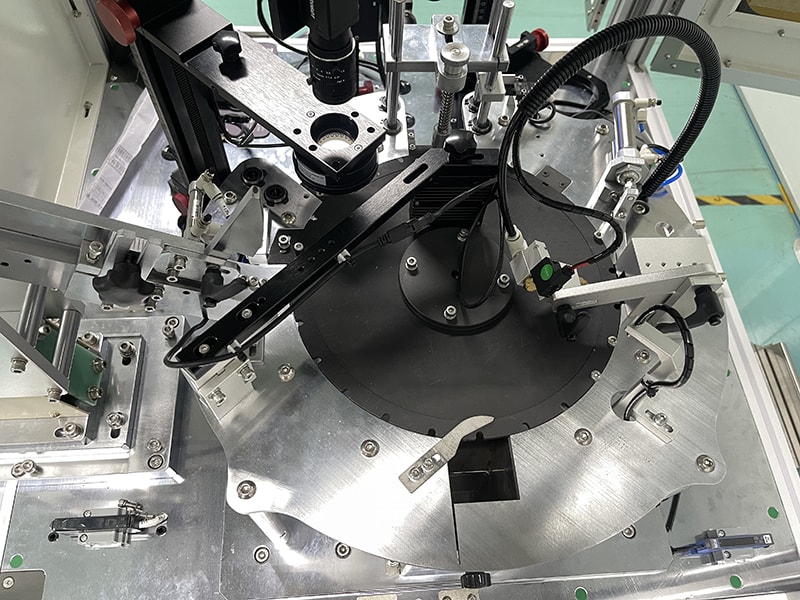 Данная машина оснащена специальным оборудованием, основной функцией которого является обеспечение неподвижности деталей, которая может быть вызвана вращениями ротерного стола, при проведени инспекционной проверки. Специальное прижимное устройство удерживает изделие в неподвижном состоянии, позволяя камерам сделать четкие снимки.